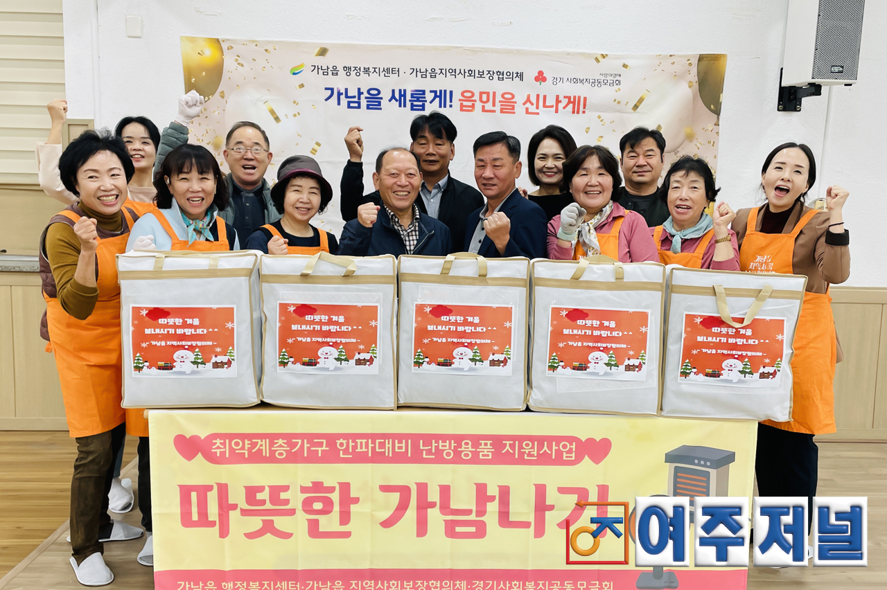 이복환 읍장은 “이번 사업을 통해 우리 이웃들이 따뜻한 겨울을 보내시길 바란다”며 “앞으로도 가남읍은 어려운 이웃과 함께하며 따뜻한 지역사회를 만들기 위해 노력하겠다”고 말했다.