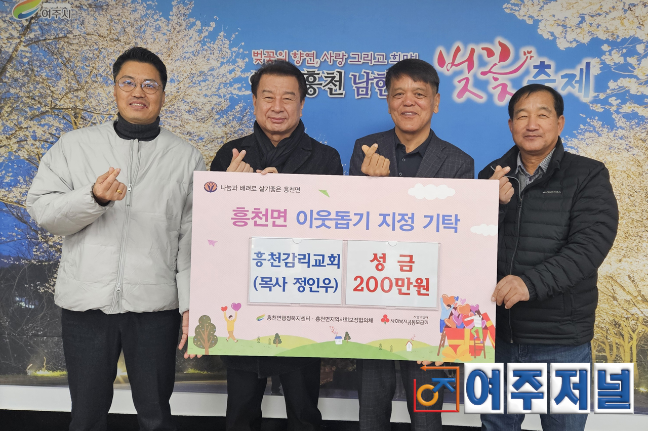 흥천감리교회(목사 정인우)는 지난 19일 이웃돕기 성금 200만 원을 흥천면행정복지센터(면장 이상면)에 기탁했다.