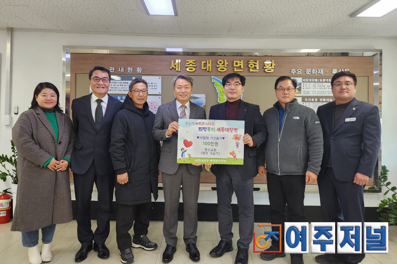 장수교회(담임목사 조용기)는 지난 26일 어려운 이웃을 위한 성금 100만 원을 세종대왕면 지역사회보장협의체(공동위원장 노규남 홍광래)에 기탁했다.