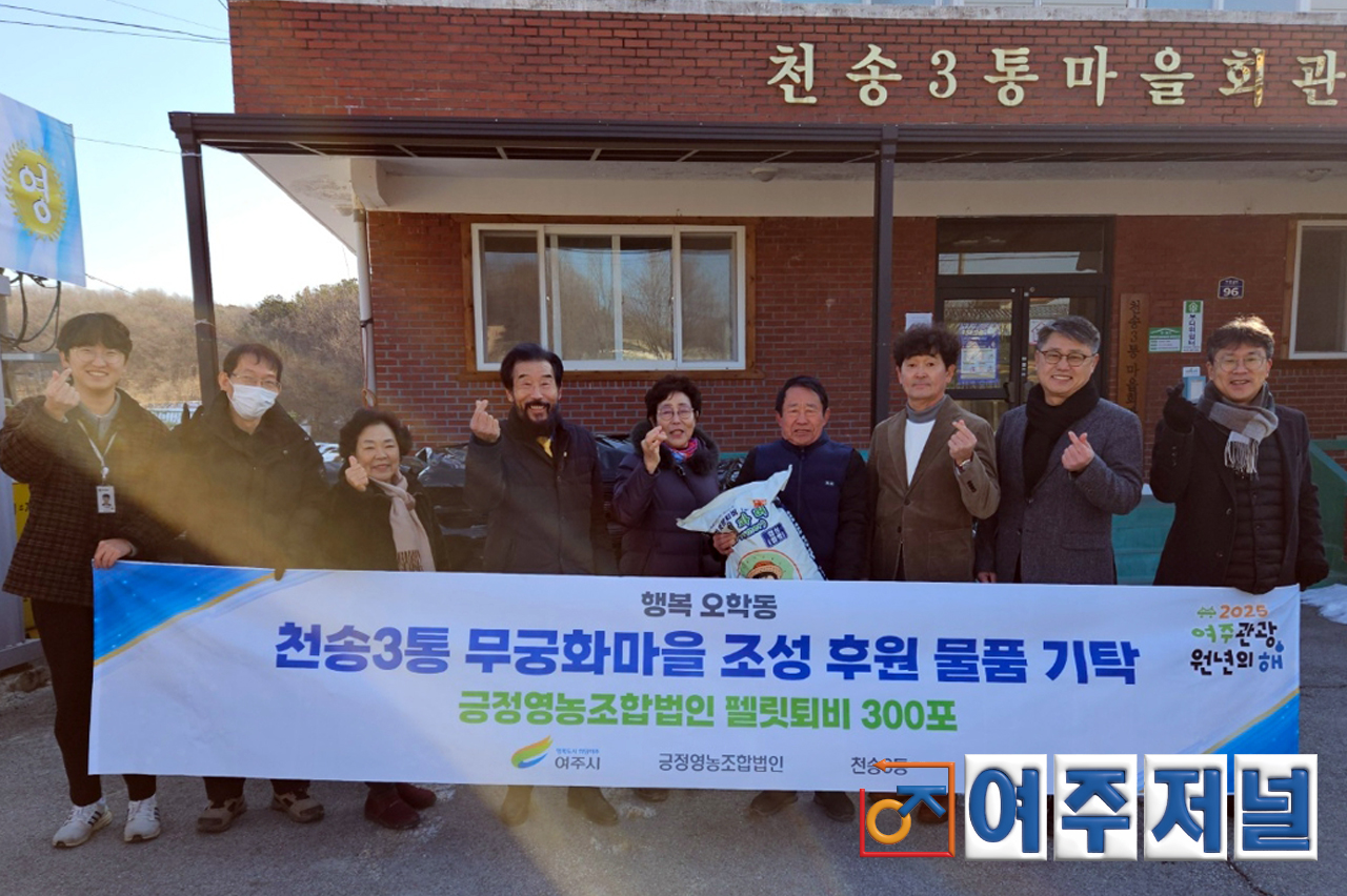 긍정영농조합법인(대표 박운호)은 지난 4일 천송3통(통장 조세환) 마을회관에서는 무궁화마을 조성을 위해 200여만 원 상당의 펠릿 퇴비 300포를 후원했다.
