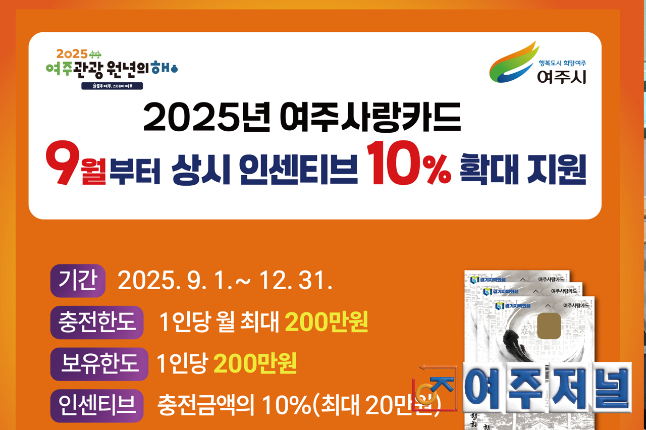 여주시는 오는 9월부터 정부의 지역화폐 확대 정책에 따라 여주사랑카드 인센티브를 확대 지원한다.