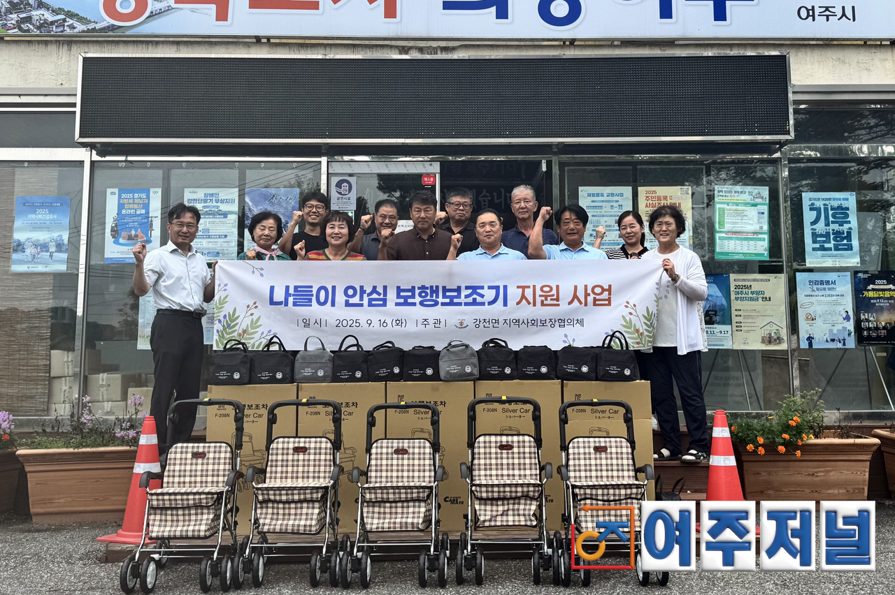 강천면 지역사회보장협의체는 지난 16일 나들이 안심 보행 보조기 전달식을 열고 21가구에 전달했다.